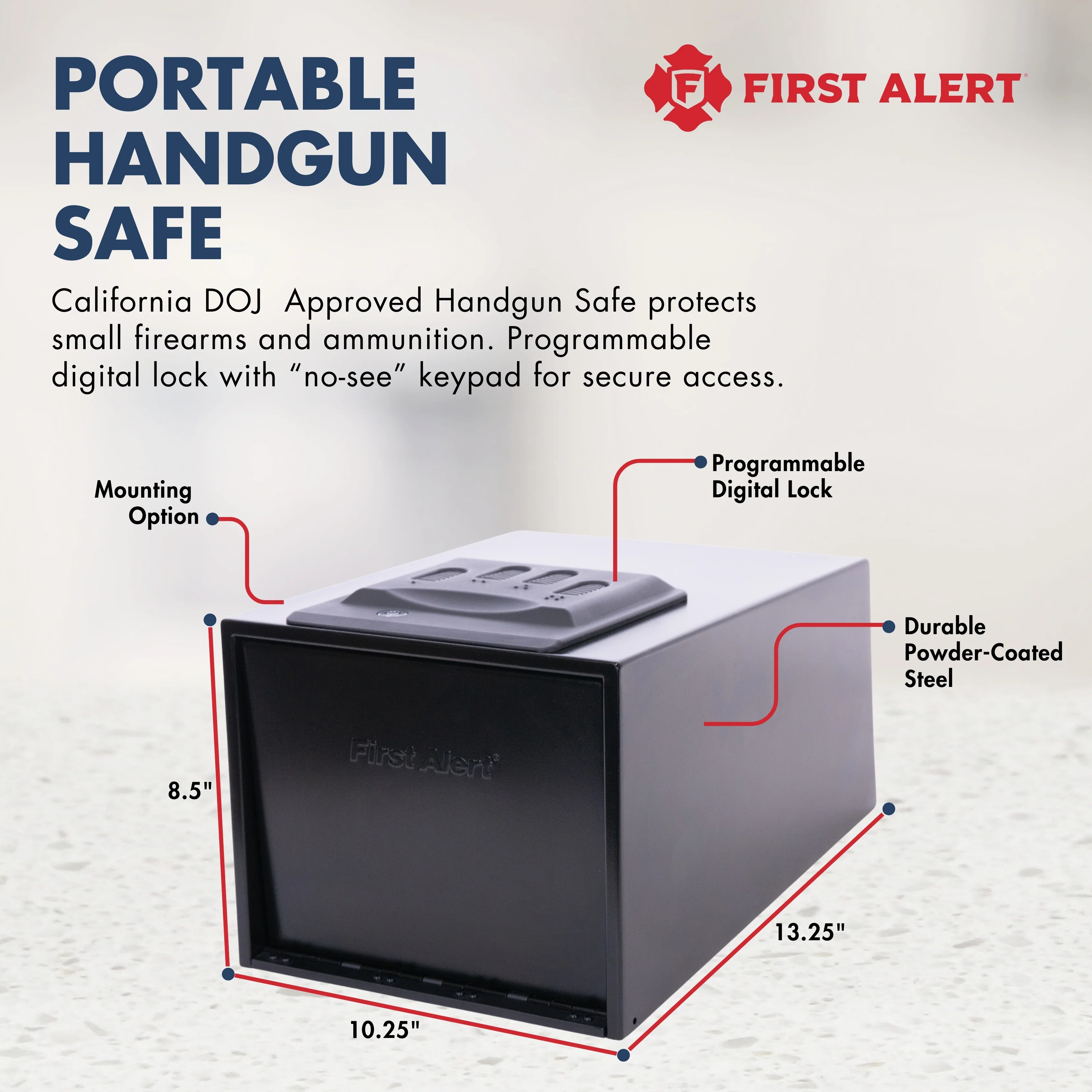 - First Alert Large Portable Pistol or Handgun Safe, CA DOJ Approved